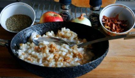 Jeżeli lubimy smaki pikantne, pokruszmy suszoną papryczkę chili i dołóżmy do patelni. Razem z cebulą możemy poddusić i jabłko. Dodamy je do smalcu albo w kawałkach, albo po zmiksowaniu czy roztarciu. Na przykład ze świeżo zmielonym pieprzem. A co z solą? Można dodać już na etapie smażenia, ja tego nie robię, wtedy każdy może posolić sobie sam, wedle uznania.