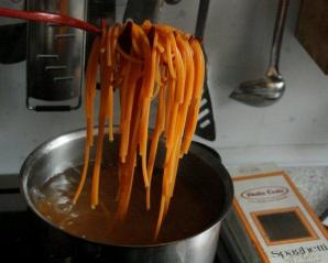 Koniec dygresji, wracam do spaghetti. Przepis jest banalnie prosty: cebulę poddusić w oliwie, dodać pomidorową passatę i pokrojone w plasterki lub paski salami, doprawić ziołami, pieprzem, pogotować. Można oczywiście dusić świeże pomidory. (W czasach PRL-u jednym z nich produktem był tzw. koncentrat pomidorowy, nie zawsze dobrej jakości; już w czasach „wczesnego Gierka” pojawił się ketchup z „Pudliszek”, bardzo zresztą dobry). Sos trzeba wymieszać z makaronem ugotowanym al dente i podać z tartym parmezanu. Na wierzch warto zawsze dać posiekaną zieleninę: bazylię, tymianek lub choćby natkę. Spaghetti mam al’ aglio e peproncino, czyli z czosnkiem i ostrą papryczką, naprawdę pikantny, sosu już nie ma potrzeby zaostrzać, do zieleniny wkrajam nieco selera naciowego.