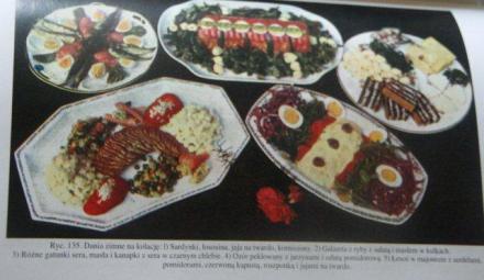 A w ogóle, autorka zauważa, że w dobie powojennej [a myślała o pierwszej wojnie światowej] skala życia wszędzie się zmniejszyła i w wielu wypadkach półmisek lub taca ładnie przyrządzonych tartinek, – jedno danie mięsne zimne lub gorące, zawsze w towarzystwie sałat lub kompotu i zimna legumina – tort, krem, galareta, stanowią często zupełnie wystarczającą kolację proszoną, szczególniej jeśli dania są obfite i smacznie przyrządzone.