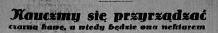 A oto kawowy tekst z drugiej przedwojennej gazety, z ukazującej się w Łodzi „Ilustrowanej Republiki”. Mamy rok 1930, felieton zawiera porady praktyczne, mogą i dzisiaj skorzystać z nich ci, którzy jeszcze nie mają „kombajnów kawowych”: