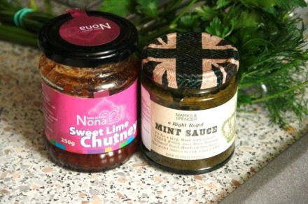 Dodatki? Frytki czy inne ziemniaki albo/i ładnie uformowana kupka ryżu z zielonym groszkiem. Oraz na pewno jakaś surówka. Wino czerwone zaś – dowolnie. Ja do tego mięsnego szaleństwa podałam dwa gotowe sosy: chutney z limonki na słodko oraz klasyczny angielski sos miętowy. Polecam także różne sosy z Indii. Znakomicie grają ze stekami lub befsztykami. Sosy postawiłam na stole w słoiczkach, może to nie szczyt elegancji, ale w codziennym obiedzie nie przeszkadzało:
