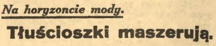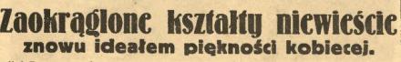 piękności: „Panie, nie bądźcie chude!”, stwierdzające że „chuda Venus” musi wyjść z mody i stoi już pod znakiem zmierzchu. Potwierdzeniem tej opinji jest wiadomość, otrzymana przez nas z Hollywood, skąd sygnalizują nam, że nietylko świat filmowy, ale całe w ogóle Stany Zjednoczone tak są zachwycone nową gwiazdą, nazwiskiem Mae West, że dotychczasowe reguły pięknościowe świata filmowego zagrożone są całkowitym upadkiem.
