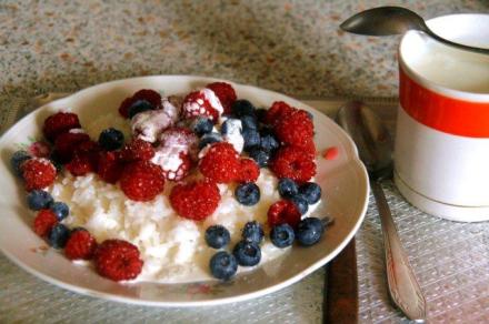 Wśród potraw barowych były liczne dania z ryżem. Jedno z nich niedawno przyrządziłam dla mojej Mamy i smakowało jej nadzwyczajnie. Może dlatego, że proste, że przenoszące w czas dzieciństwa, że ma jakiś urok czasów minionych? To po prostu ryż z owocami, dobrą śmietaną i cukrem (najlepiej pudrem; polecam młynek z takim cukrem!). Potrawa znakomita i dla dzieci, i dla ludzi starszych. Może być, do maślanki, jogurtu, kefiru lub kwaśnego mleka, daniem obiadowym. Idealnym na upały! Może być leguminą podaną na deser. Mało kto nią wzgardzi.