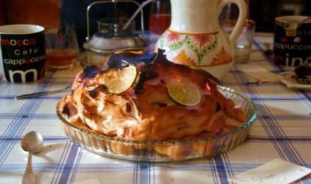 To tylko wygląda bardzo zawile. W wersji uproszczonej (taka była moja) na spodzie foremki układamy kupne biszkopty, skrapiamy je likierem lub innym alkoholem (u mnie było to „Amaretto”), nakładamy lody (też kupne) z pudełka, obkładamy dokładnie pianą. Zapiekałam wszystko przez 20 minut w temp. 220 st. C. Oczywiście, gościom nie powiedziałam, że to przepis francuski. Podałam deser jako Zapiekaną Alaskę, bo przecież byliśmy na przyjęciu dla kowbojów na ranczu Ponderosa!