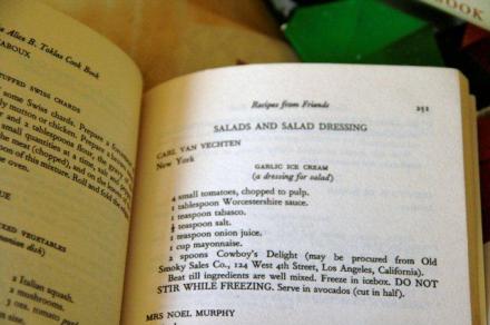 Coś zimnego, coś małego: w upalne dni późnego lata na pewno to będzie smakowało. Tę dziwną potrawę – niby-sos, niby-lody – już tu opisałam i podałam przepis (można go znaleźć pod tagiem: lody). Odkryłam ją w książce Alicji B. Toklas, podającej przepisy w większości na oryginalne, artystyczne wręcz jedzenie. Ten jest na pewno oryginalny.