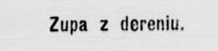 Dereń jest owocem mało znanym u nas, znajduje się w Mokotowie: na Podolu, Ukrainie smażą z niej wyborną konfiturę, smakującą jak wiśnie; w Galicyi robią bardzo dobrą zupę owocową. Nalawszy pełen gliniany garnek dereniu źródlaną wodą, gotować go do zupełnego rozgotowania, następnie przefasować, włożyć kawałek cynamonu, na kwartowy garczek zupy ćwierć funta cukru i zaprawić trzema łyżkami dobrej młodej śmietan, rozbitej z łyżeczką mąki kartoflanej – do owocowych zup używa się zawsze mąki kartoflanej – zagotować razem, wrzucić w wazę grzanki w paseczki krajane i na młodem maśle usmarzone [taka wtedy była pisownia tego wyrazu], lub oddzielnie podać większe, maczane w śmietanie i także na młodem koniecznie maśle smarzone –