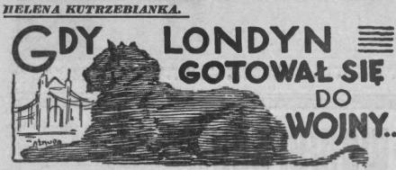 Wśród tych listów znalazła się korespondencja p. Heleny Kutrzebianki, studentki U. J. z Krakowa, córki znanego uczonego, która przebywając w Londynie, miała sposobność zetknięcia się z życiem Anglików w okresie przełomu. Korespondencję tę, niezwykle interesującą, cechuje bezpośredniość w ujęciu życia Londynu i specjalne uwydatnienie reakcji obywatela angielskiego w okresie gorączkowych przygotowań obronnych Anglji.