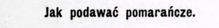 Opisywana już tutaj szeroko barwna warszawska „kucharka” i redaktorka Lucyna Ćwierczakiewiczowa prowadziła w „Bluszczu” dział poradniczy przez końcówkę XIX wieku. Zamieszczała porady różne, wcale nie tylko kuchenne. Najbogatszy był zawsze dział mody, kulinaria stanowiły zaledwie dodatek do niego i nie zawsze się mieściły. W roku 1885 zmieściła się jednak taka osobliwa porada. Wynika z niej, że pomarańcze dopiero zdobywały stoły i nie każdy wiedział, jak je podać: