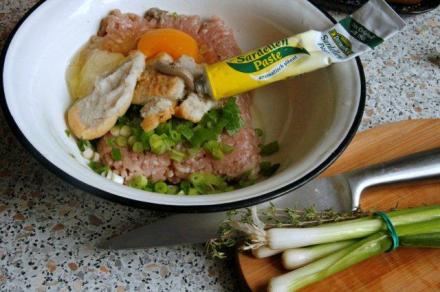 Nieco powarcholiłam. Przyrządziłam te kotlety zwyczajne, restauracyjne. Z mięsa mielonego (może być kurczak lub indyk, cielęcina). Ale z dodatkiem posiekanej dymki, tymianku, musztardy oraz pasty sardelowej (można dać zmielone anchois). Te dodatki uczyniły ciekawszym dość mdławy smak mięsa w moim wypadku cielęcego. Czy to jeszcze kotlety pożarskie? Można je nazwać, dla spokoju ortodoksyjnych specjalistów od kuchni: kotlety pożarskie po mojemu.
