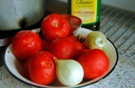 …wykorzystajmy je więc na samodzielnie zrobiony sos. Weźmie się za to tylko ten, kto ma czas. Ale może warto go znaleźć? Trzeba: iść na bazar po pomidory (spacer zawsze pożyteczny), sparzyć je i obrać ze skóry, znaleźć dobry przepis na sos, pokroić pomidory i ew. inne składniki. A potem to już z górki. Sos się gotuje sam. Może kilka razy przemieszany.