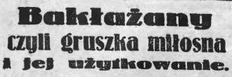 Przed wojną bakłażany popularyzował redaktor działu ogrodniczego „Ilustrowanego Kuryera Codziennego” podpisany M. Ł. Jesienią 1934 roku zamieścił ciekawy tekst opisujący same warzywo, a także to, co z niego w kuchni da się wykonać. Wszystko można zastosować dzisiaj, tyle że do bakłażanów używajmy tłuszczów roślinnych, nie zwierzęcych. Zwłaszcza że tłuszcz chłoną jak gąbka. Zapobiega temu obgotowanie warzywa, nasolenie go, odczekanie, opłukanie (ten zabieg ma także usuwać goryczkę niektórych gatunków), opiekanie na grillu po lekkim posmarowaniu oliwą. A oto tekst z IKC:
