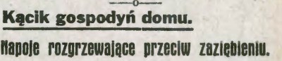 …Fatalna aura pociąga za sobą łatwość zaziębiania się. W razie przemarznięcia, objawów dreszczy itp. ciepłe łóżko jest pierwszym warunkiem, zapobiegającym chorobie. Niestety, nie zawsze ten środek daje się zastosować. Często trzeba się uciekać do napoi rozgrzewających.