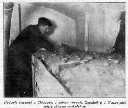 I dzięki temu wzrasta u nas zainteresowanie tą nową gałęzią produkcji i hodowle pieczarek mnożą się ustawicznie. Niebawem tysiące gości z całej Polski, zwiedzając P. W. K. będzie miało sposobność zapoznać się z tym nowym przemysłem, który ma u nas wszelkie warunki pomyślnego rozwoju.