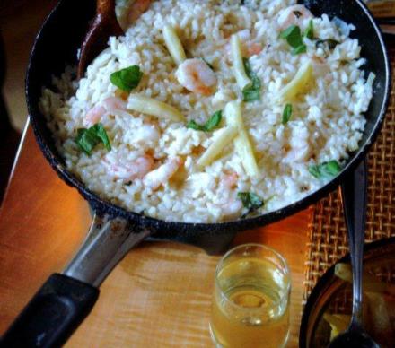 Kochanej znajomej jubilatce (i wszystkim nieznajomym też!) składam moc życzeń dotyczących: powodzenia, spełnień i szczęścia. Dołączam przepis na jedno danie oraz cocktail delikatny i stawiający na nogi zarazem. Danie może być odskokiem w bok w stosunku do gotującej się kapusty i grzybów, ucieranego maku, zapachu oleju rzepakowego lub lnianego. To łagodne risotto.