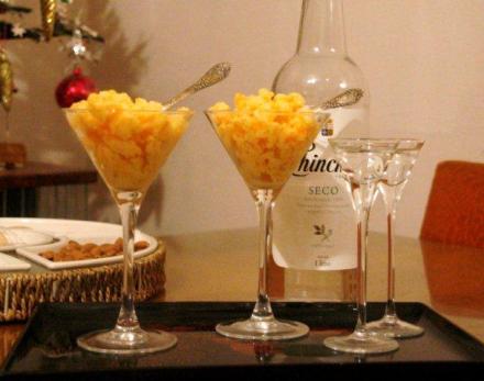 No i najważniejsza zmiana: nie wyciskałam soku, lecz zmiksowałam mandarynki (obrane z białej skóki; bez pestek), dodając sok tylko z limonki. Chętnie przybrałabym mój sorbet świeżym listkiem melisy lub mięty, ale go nie miałam. Dlatego podałam do niego kieliszek mocnego likieru anyżowego. Kto chce, może korzystać z rady Alicji B. i przybrać sorbet bitą śmietaną. Ale nie jest to potrzebne. Przekonałam się, że sorbet robi się banalnie prosto. To świetny deser, który na pewno się spodoba gościom! Niskokaloryczny, z owoców, można go podawać dzieciom. No i ładnie wygląda.