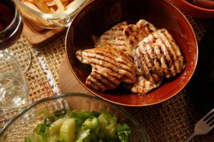 Na razie bardzo prosty, codzienny obiad: szybki do przygotowania. Z piersi kurczaczej. Jest chętnie kupowana i przyrządzana, bo wystarczy ją po prostu usmażyć, aby była gotowa. Warto przed tym ją opukać trzonkiem noża. Spotkałam także zalecenia, aby owinąć je folią i podbić lekko tłuczkiem. Idzie o to, aby zmiękczyć mięso, ale nie zniszczyć jego struktury (nie poszarpać). Proponuję usmażyć piersi kurczaka na patelni grillowej. Idzie to błyskiem. Ale mięso warto wcześniej przygotować.