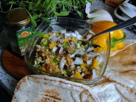 To wszystko. Gdy kaszę mamy wcześniej ugotowaną (np. z obiadu sprzed dnia, dwóch, oczywiście trzymaną w lodówce), przygotowanie sałatki trwa pięć minut. Nie podaję proporcji, zależą od ilości burgulu oraz od naszych upodobań (czy liczymy węglowodany, czy nie? Patrz niżej). Do sałatki można wkroić świeży ogórek lub/i pomidory, wtedy będzie przypominała sałatkę najczęściej przyrządzaną u nas z drobnego kuskusu: tabuleh.