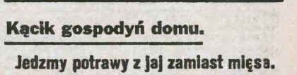 Lekarze zalecają zupełną zmianę sposobu odżywiania się przynajmniej raz do roku. Na wiosnę sam organizm upomina się o to. Potrawy mięsne nie pociągają nas, wolelibyśmy coś lżejszego. Jarzyn świeżych mamy mało, są drogie, nie każdemu domowi dostępne. Jedzmy więc tanie obecnie jaja. Możemy je w tysiączne sposoby przyprawiać, tak, że się prędko nie uprzykrzą.