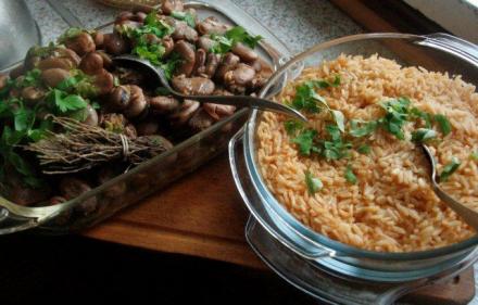 Nabraliśmy apetytu? Czas więc na przepis. Na obiad ciężki, bo zimowy, ale zarazem mocno aromatyczny i bogaty w składniki odżywcze. Bez podania dokładnej receptury. Sądzę, że mięso duszone, gotowaną fasolę i ryż oraz sałatkę, każdy z czytających o kuchni umie zrobić sam. Podam tylko kilka szczegółów.