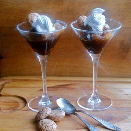 Moje wątpliwości budziły te filiżanki kawy. Jakiej wielkości: typowe czy malutkie, do espresso? Zaparzyłam więc kawę po prostu w kubku zalewając wrzątkiem 3 solidne jej łyżeczki. A cukru wzięłam mniej (60 g). Kruszarki nie mam, postąpiłam więc, jak opisałam wyżej. W przepisie nie idzie o „świeżą śmietanę”, ale o świeżo ubitą. I taką udekorowałam pucharki z kawowym granito. Oryginalne i eleganckie zwieńczenie obiadu. Polecam. Nawet w taki mróz, jaki mamy za oknami.