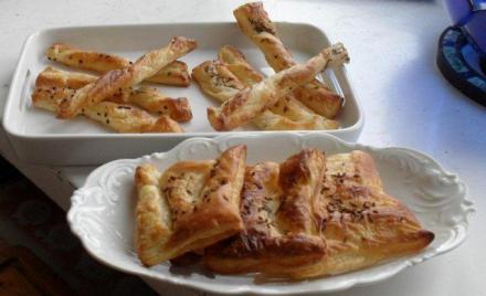 Zwykle stawiam obok chleb: ciemny i jasny, najlepiej jednak świeży. Ale tym razem może zaszaleć? Kupując łososia, rozejrzyjmy się za francuskim ciastem. Ono także było nieosiągalnym marzeniem w tych wyżej wspomnianych czasach PRL-u. A teraz tych ciast są różne rodzaje, od różnych wytwórców. Warto wypróbować i dobrać ulubione. W każdej chwili można je wyjąć i rozmrozić lub nie, bo są także takie ciasta tylko schłodzone, i je upiec, krojąc w dowolne kształty. Ciasto posypujemy ziołami lub przyprawami korzennymi. Kto chce, posypie także grubą solą (a na słodko – cukrem). Do łososia mnie pasowały: czarnuszka, kminek i… anyż. Jakoś taki skandynawski w stylu.