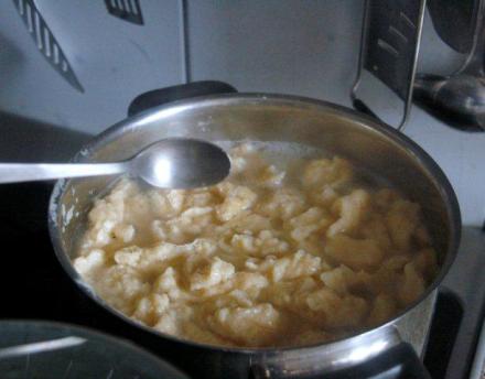 Kluski pozostawiamy bez sosu z konkretnego powodu. Na kolejny obiad można je ponownie odgrzać, zanurzając na moment w osolonym wrzątku. Ale dadzą się także znakomicie odsmażyć – aż do uzyskania złotej chrupiącej skórki. Są więc znakomite jako resztki.