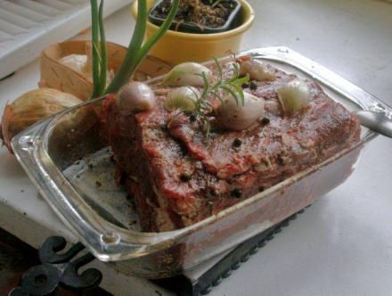 Mięso zamarynować: natrzeć przyprawami, obkłożyć szalotkami. Przykryć folią, trzymać co najmniej dobę w lodówce. Wyjąć na godzinę przed przyrządzeniem. Oczyścić z przypraw, rozgrzać olej, mięso obsmażać z każdej strony (potrwa to z 10 minut). Tłuszcz po smażeniu pozostawić.
