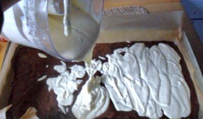 Na sernik zmiksować wszystkie składniki białej masy. Wylać na ciemną.