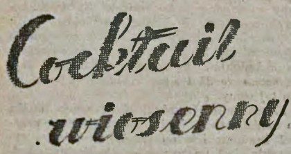 – Czy wiecie, co to jest cocktail? Jeżeli nie, to wam powiem. Otóż jest to mieszanina przeróżnych trunków. Bierze się więc naprzykład trochę szampana, trochę rumu, łut soku ananasowego, kilka kropel Benedyktynki, wszystko to razem miesza i cocktail gotowy. Można go potem nazwać: Tropikal, Nedbal, czy Horizontal, bo przy sporządzaniu tego najmodniejszego trunku nie kładzie się tamy pomysłowości, ani w dobrze ingredjencji, ani też nazw. Wolno tedy mieszać, co się chce i jak się chce, a potem chrzcić tę miksturę dowolnem mianem, oczywiście broń Boże bez wody.