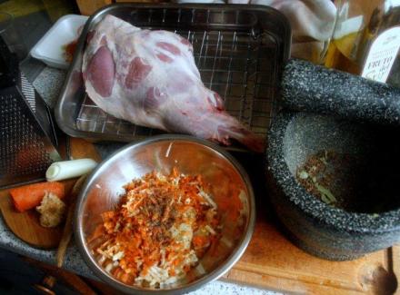 Następną potrawę robiliśmy przed laty, dysponując udźcem baranim, a że jego upieczenie zakończyło się sukcesem, metodę przygotowania powtórzyliśmy. Powiem jedno: mięso tak upieczone jest wybitnie delikatne i bardzo smaczne.