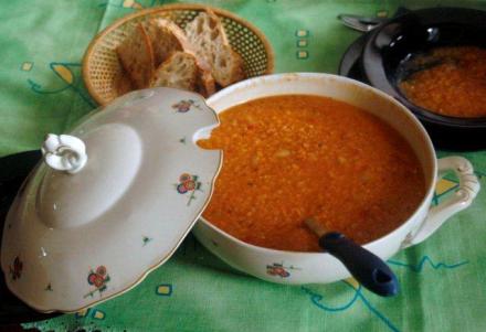 Zupę można zmiksować i przetrzeć przed dodaniem zasmażonej cebuli, ale ja tego nie robię. Pasuje do niej świeży chleb. W zasadzie wystarcza za cały codzienny posiłek, jest bardzo sycąca. A dzięki dodaniu przypraw korzennych znakomicie rozgrzewa.