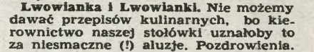 A na deser podaję coś bardzo smacznego, choć tylko do poczytania. Wśród odpowiedzi czytelnikom „P” z roku 1946 znalazła się taka: