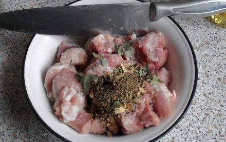 Proszkiem z moździerza natarłam mięso i pozostawiłam w miejscu chłodnym (koło okna), lecz nie w lodówce.