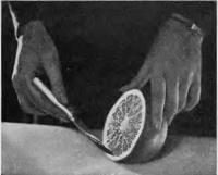 (…) Oto wyborna sałatka do mięsa: wyciąć i starannie oporządzić cząstki owocu, ułożyć je w salaterce na liściach sałaty, posypać lekko solą i pieprzem i podać po przyprawieniu sokiem z cytryny. Plasterki pomidorów, zielony groszek, pokrojona marchewka i kartofle mogą być dodane do tego dania.