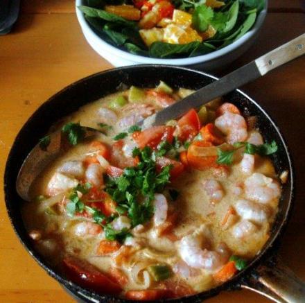 Krewetki z warzywami w sosie kokosowym