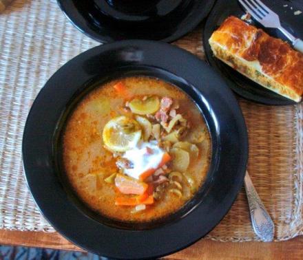 Zupa podana po rosyjsku, z takim pirożkiem, znakomicie zaspokaja apetyt na cały obiad. Staje się posiłkiem jednodaniowym. Oprócz pirożków z różnym nadzieniem, do rosyjskich zup można podawać kasze, kulebiaki, rastiegaje (paszteciki otwarte), bliny, watruszki itd. Z wyjątkiem kasz (też bardzo lubianych, to osobny temat!) i blinów, nazwy oznaczają rodzaje pirogów.