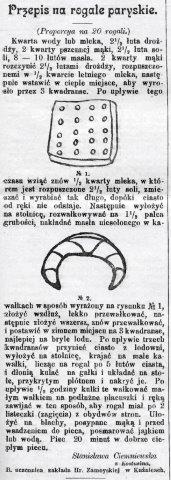 Wobec ogólnego prądu, dążącego do zaniechania wszystkiego, co trąci niemczyzną, p. N. Dzierzkówna proponuje za naszem pośrednictwem, aby Sz. Panie, oraz właściciele cukierni zechcieli zmienić obcą nam, choć zwyczajem utartą nazwę „baumkuchenów” na więcej swojską. Słusznie zatem pisze panna D., że „przecież język nasz jest dość bogaty, aby się zdobyć na własny, odpowiedni wyraz.” Wobec tego prosimy nasze Sz. Czytelniczki i Czytelników o łaskawe nadsyłanie nam odpowiednich swojskich nazw, któremi możnaby zamienić dotychczasową niemiecką.