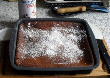 Zawsze mnie zastanawiają przepisy z ta „połową proszku do pieczenia”. Przecież nie wszystkie paczuszki są jednakowe. Do tych składników chyba wystarczą dwie łyżeczki. Nie ma też podanego czasu pieczenia. W 180 st. C będzie to trwało godzinę. Ale już po 40 minutach warto zajrzeć do piekarnika, bo sernik może być gotowy.