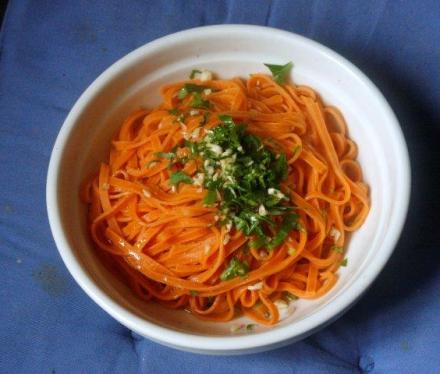Fettucine ugotowane al dente podałam po doprawieniu natką pietruszki przesiekaną z czosnkiem i ukręceniu tej mieszaniny z oliwą. To wszystko. Można dodać tarty ser, najlepiej grana padano, parmezan lub pecorino. Wszystkie są do kupienia.