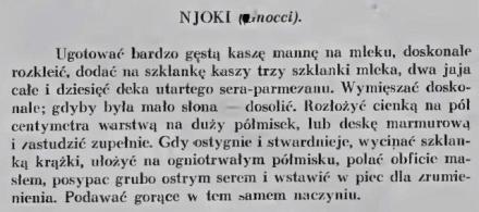 Dla dopełnienia przytoczę przepis na gnocchi, jaki Pani Elżebieta podała w „Bluszczu” z roku 1930 przy okazji opisywania kuchni włoskiej: