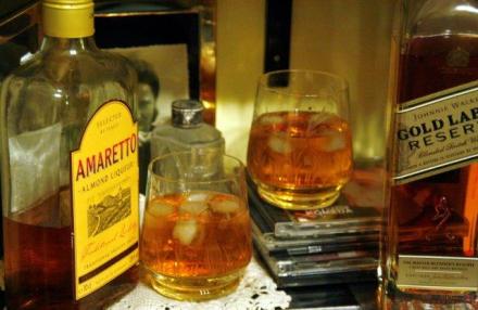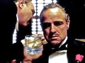 Najpierw aperitif. Znalazłam go w książce o koktajlach autorstwa Roba Chirico. Jak objaśnia, istnieje wiele koktajli, które wymyślono na część filmów czy filmowych gwiazd. Zwykle nie żyją długo. Ten jakoś przetrwał. Kiedy go pić? „Czy alpejska wiosna, lato w pełni, złota polska jesień czy też ferie zimowe, Ojciec Chrzestny będzie mężczyzną na wszystkie pory roku”. A gdzie go można znaleźć? Autor radzi: „Rozejrzyj się za klubami w klimacie Hollywood. Czy w twoim mieście jest bar w stylu Cinema Noir? Jeśli nie, być może stworzenie go okaże się świetnym biznesem na przyszłość?” Hm. Na razie próba domowa. Koktajl jest bardzo prosty. Wystarczą dwa składniki. My je mieliśmy.