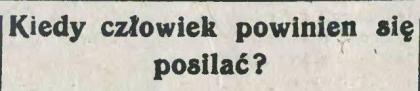 Stale praktykowany rozdział terminów przyjmowania posiłków, a więc śniadania, drugiego śniadania, obiadu, podwieczorku i kolacyi jest niewłaściwy i zupełnie odwrotny – tak twierdzi i stara się udowodnić profesor Bergonie z Bordeaux, znany także i u nas przez swoją nową metodę leczenia otyłości. Profesor od dłuższego już czasu zajmował się odpowiedzią na pytania, kiedy najstosowniej powinno się posilać i obecnie przedłożył paryskiej Akademii Umiejętności swą pracę na temat: „Zmiany zużycia energii w ciele ludzkiem w przeciągu dnia” , w której omawia dokładnie tę kwestyę.