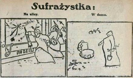 Nie muszę chyba tłumaczyć, że ówczesna sufrażystka to dzisiejsza feministka. Czy tak wiele nas różni od naszych prababek? No, może dziś panowie nie rozładowują swoich stresów i niepewności co do swoich ról życiowych tego rodzaju „żartami”. Chyba że pokątnie, po cichu.