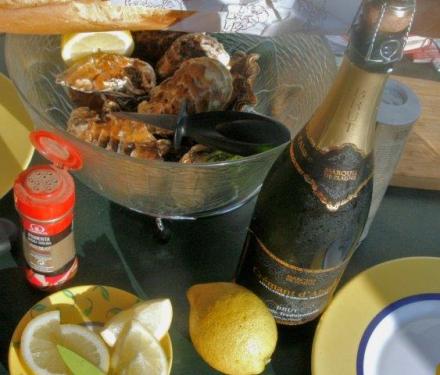 Gdy nastał 16 czerwca, dzień moich imienin, byliśmy na naszym campingu. Postanowiliśmy urządzić elegancką kolację. Nie na próżno przebywaliśmy obok jednych z większych we Francji hodowli ostryg. Znajdują się w jeziorze Thau, obok nieodległej Le Cape d’Agde miejscowości Sète. Nic więc dziwnego, że ostrygi można tu dostać we wszystkich sklepach z owocami morza, a są nawet punkty tylko je oferujące. Jak ostrygi, to i szampan. Nie był to jednak oryginalny trunek z Szampanii, ale znakomite wino musujące z Alzacji, oczywiście tzw. metodą szampańską preparowane. To Crémant d’Alsace. Szczerze go polecam (już w blogu o nim pisałam). Zamiast kupować taniego szampana o niewiadomej jakości, wybierzmy ten trunek w wersji brut, czyli mocno wytrawnej. Schłodźmy go porządnie. I cieszmy się nim. Pojawił się także w Polsce.