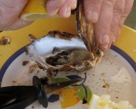 Podważamy mięczaka, skrapiamy cytryną, posypujemy pieprzem i – jemy. Popijając winem musującym lub niemusującym, zawsze białym i schłodzonym. Zagryzając świeżą bagietką. Podobno smakosze takie ostrygi jadali tuzinami (chyba bez pieczywa); tak je się i dzisiaj kupuje. Mnie wystarczyło, i zwykle wystarcza, sześć.