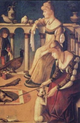 Co zrobić z takich pomidorów? Ja zrobiłam sałatkę, a raczej carpaccio. Ta nazwa dawniej był zarezerwowana dla cieniutko pokrojonej polędwicy wołowej. Potrawa ma stosunkowo niedługą historię, wymyślono ją w sławnej weneckiej restauracji dla pani, której lekarz zalecił jedzenie surowej wołowiny. Pewnie miała anemię, a może tatar się jej znudził… Nazwę potrawie kucharz nadał taką, bo przypominała mu czerwienie z obrazów weneckiego malarza piętnasto-szesnastowiecznego Vittore Carpaccio. Czy znajdziemy je choćby na płótnie obok? Bardzo lubię te smutne kurtyzany weneckie patrzące przed siebie tak z wyrachowaniem, jak i bez nadziei.