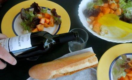 Obiad gotowy. Ze świeżą bagietką (można ją przynieść ze spaceru, gdy wypiekają je np. okoliczne kawiarnie; w Warszawie jest ich wiele a bagietki z nich dorównują tym z Francji) i lampką wina – pozwala się zregenerować. Podtrzymaniu sił i dostarczeniu porcji białka służy w mojej sałatce dodatek sera. Jego ilość wyznaczmy sobie sami. Ja użyłam korsykańskiego sera z miękką pleśnią (jak brie czy camembert), ale można dać ostrzejszy ser typu bleu, z pleśnią błękitną. Sałatę można wziąć każdą, zastosowałam dębową, aby jej gorzkawy posmak zrównoważył słodycz melona.