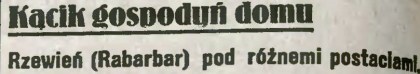 Dalej zachwyca się walorami zdrowotnymi tej rośliny: „wpływa dodatnio na nasz organizm, reguluje czynności żołądka i kiszek, jest doskonałym dodatkiem w pożywieniu małych dzieci”. Zawiera bowiem „wapień i kwas jabłkowy, wiele cennych witamin C antiszkorbutowych”. Dzisiaj ta dobra opinia o rabarbarze czyli rzewieniu się zmieniła. Ma dużo kwasu szczawiowego. Szczawiany powstające w jego następstwie mogą się gromadzić w stawach lub nerkach i powodować kamicę nerkową, co sprzyja rozwojowi artretyzmu. A więc – z rabarbarem ostrożnie!
