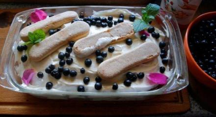 To naprawdę wszystko, a efekt na pewno zasłuży na pochwały. Do sera można dodać wanilię w postaci ziarenek zeskrobanych z laski lub ekstraktu (wciąż u nas nie mogę go dostać, przywożę z wojaży). Wodę różaną można kupić w sklepach z żywnością orientalną. Ja do deseru dodałam jagody. Nie wmieszałam ich dużo, za to podałam w miseczce obok. Kto chciał, to sobie dokładał. Listki mięty nie każdy lubi, choć znakomicie podkręcają smak słodkości. Ułóżmy je na wierzchu i także podajmy obok naszego tiramisu. Tradycyjnie posypuje się je warstwą kakao. Ale ja od tego odeszłam, chyba z niezłym efektem.