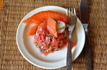 Sądzę, że takiego tatara możemy podać podczas najważniejszych dla nas obiadów. Łosoś wciąż jest rybą wykwintną, nawet ten hodowlany, a przy tym – szczęśliwie dla nas – dość tani.